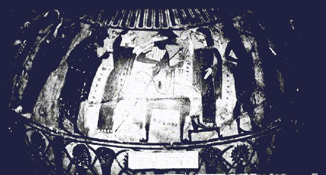 surrounded by gods and goddesses. Hephaistos is one of them.