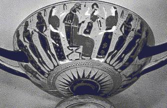 Three ribbons hang on the wall. Meaningless inscriptions are