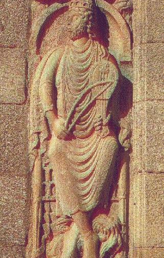 Koning David Zuidelijk portaal van de kathedraal van de heilige Jacobus in Santiago de Compostela; détail van de Romaanse façade.
